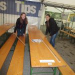 Am Freitag vor dem Musikfest erfolgte in allen Bereichen noch der letzte Feinschliff – im Zelt wurden die Tische positioniert, Licht- und Tontechnik fertig aufgebaut, Ausschank und Küche in Betrieb genommen, die Ehrenbühne und die Bars dekoriert.