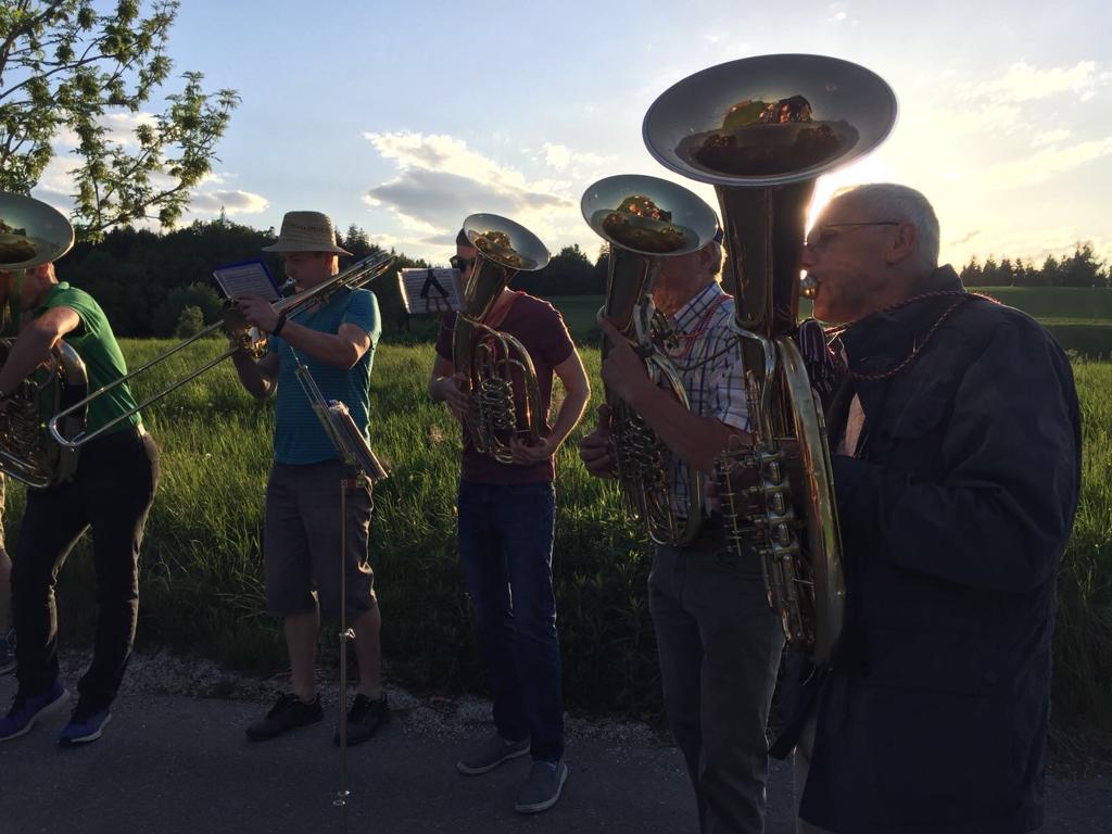 Einer der größten Highlights in unserem Musikjahr stellt das Mai anblasen dar. Ausgerüstet mit Instrument und Marschbuch machen wir uns auf den Weg um jeden Sankt Georgener den Tag mit Musik zu versüßen.